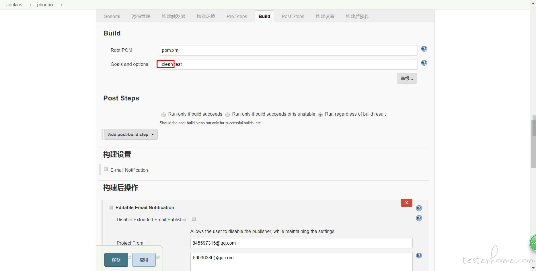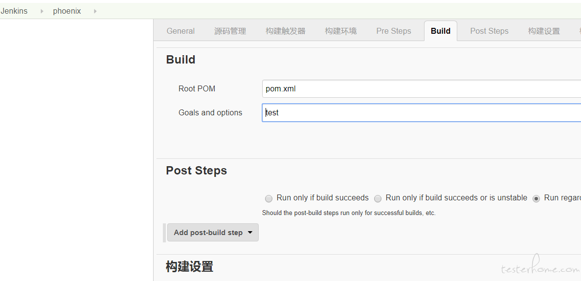 jenkins新建任务 构建一个maven工程 ,完成源码托管,完成Build配置,Build里clean test 两个命令即可完成整个工程的先clean后test,不依赖eclipse、IDEA去执行用例