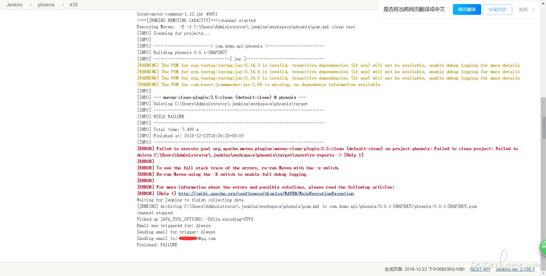 [ERROR] Failed to execute goal org.apache.maven.plugins:maven-clean-plugin:2.5:clean (default-clean) on project phoenix: Failed to clean project: Failed to delete C:\Users\Administrator\.jenkins\workspace\phoenix\target\surefire-reports -> [Help 1]