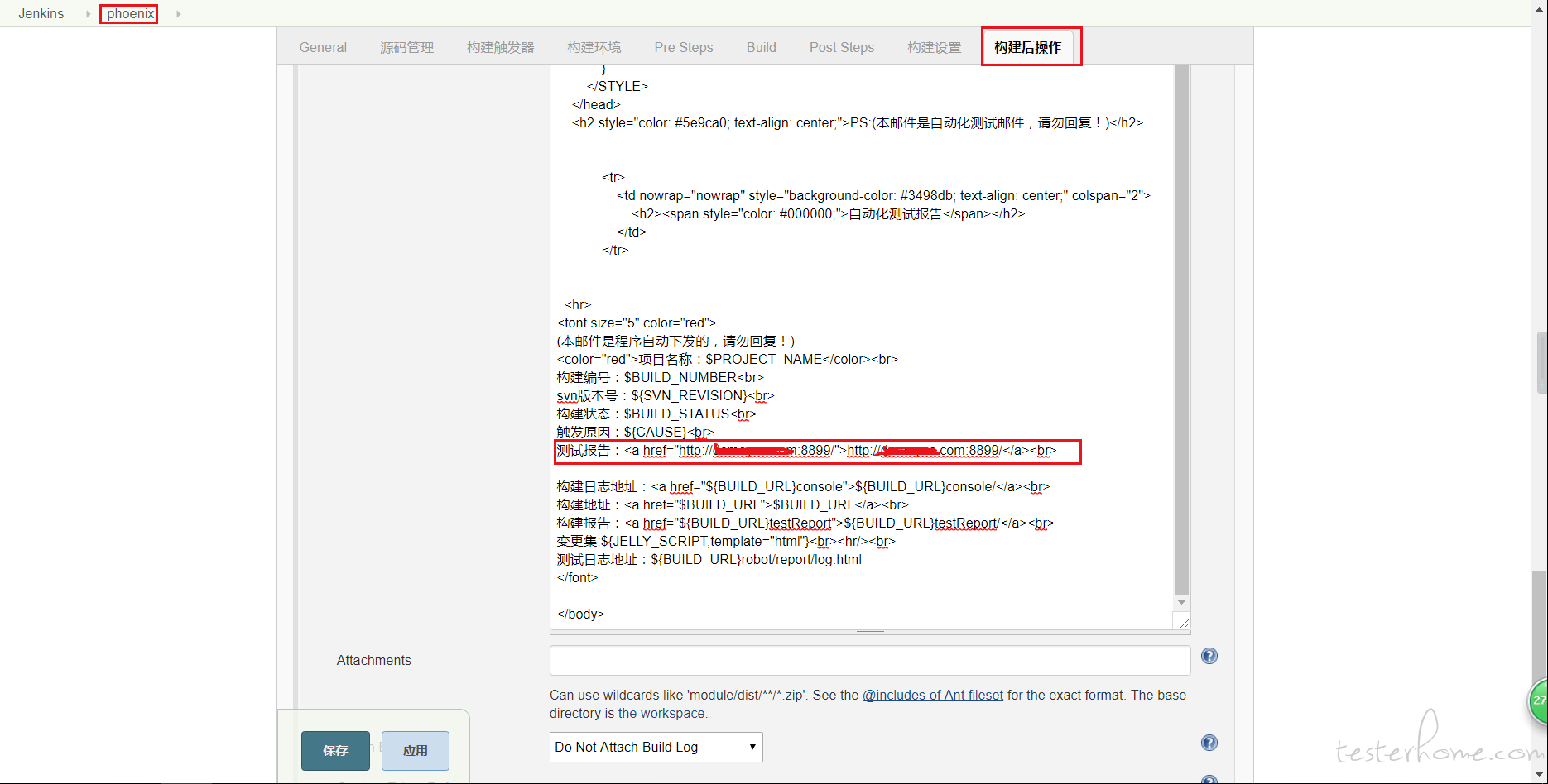 jenkins项目邮件通知里,重新修改下测试报告路径