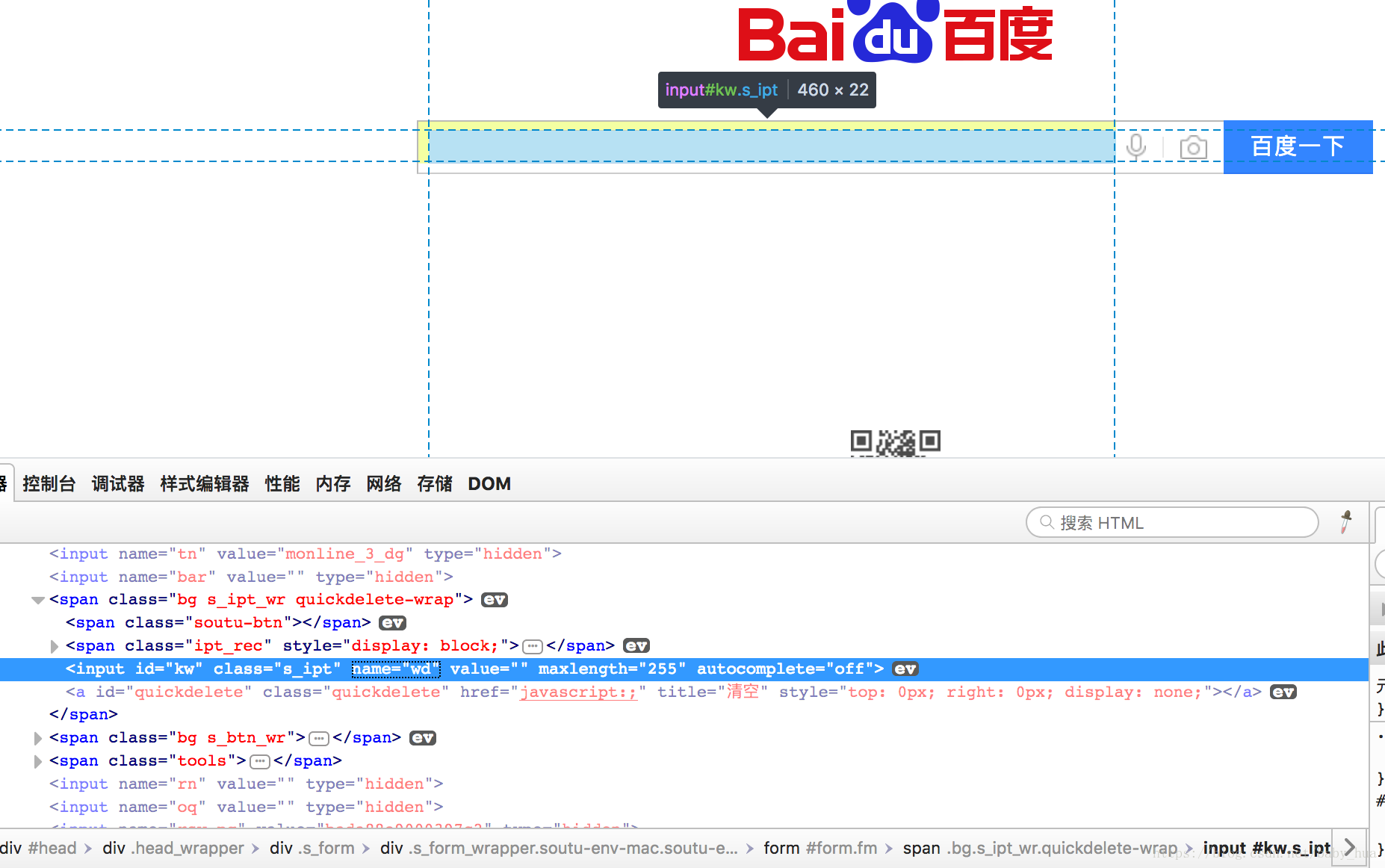 我们可以通过浏览器产看html页面元素,找到搜索框(参照之前脚本):