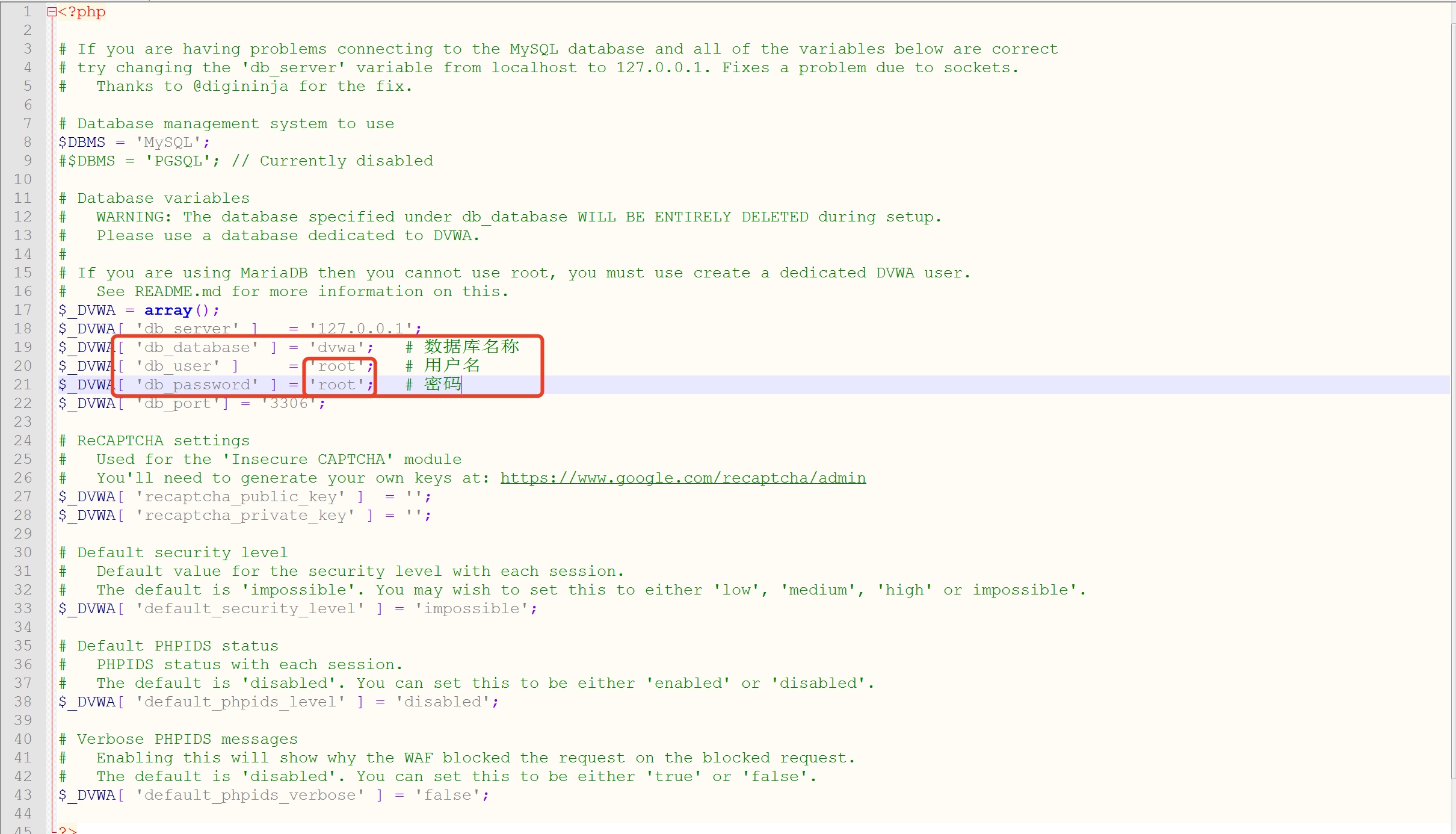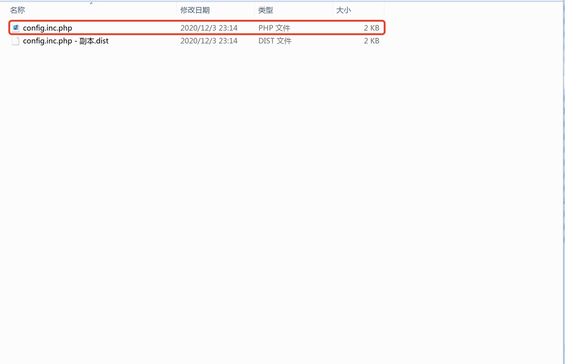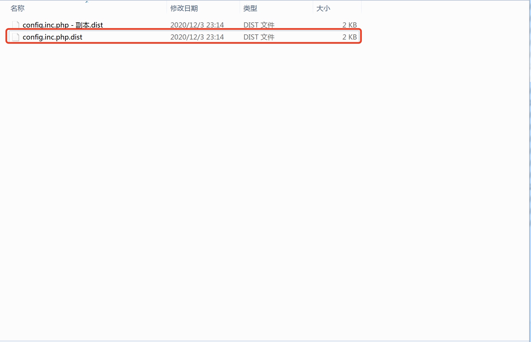 DVWA System error - config file not found. Copy config/config.inc.php.dist to config/config.inc.php and configure to your environment.,如上图那样,我们就需要去config文件夹下将config.inc.php.dist文件的后缀.dist去掉