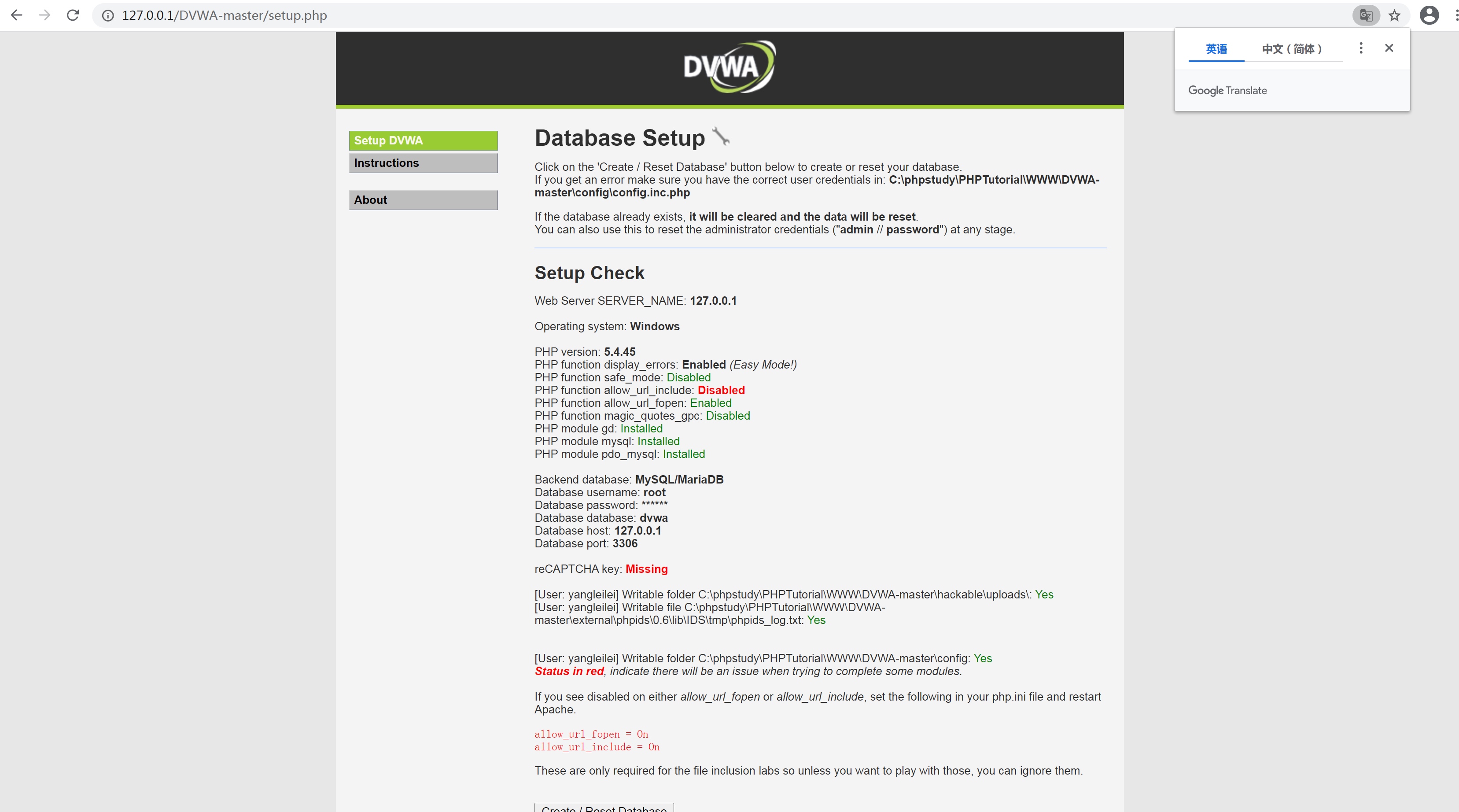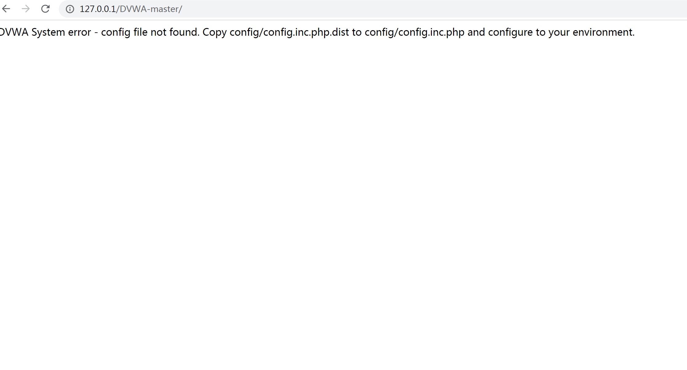 127.0.0.1/DVWA-master(路径名与文件夹名称相同,若修改文件夹名称为 d,那么url将变更为127.0.0.1/d)