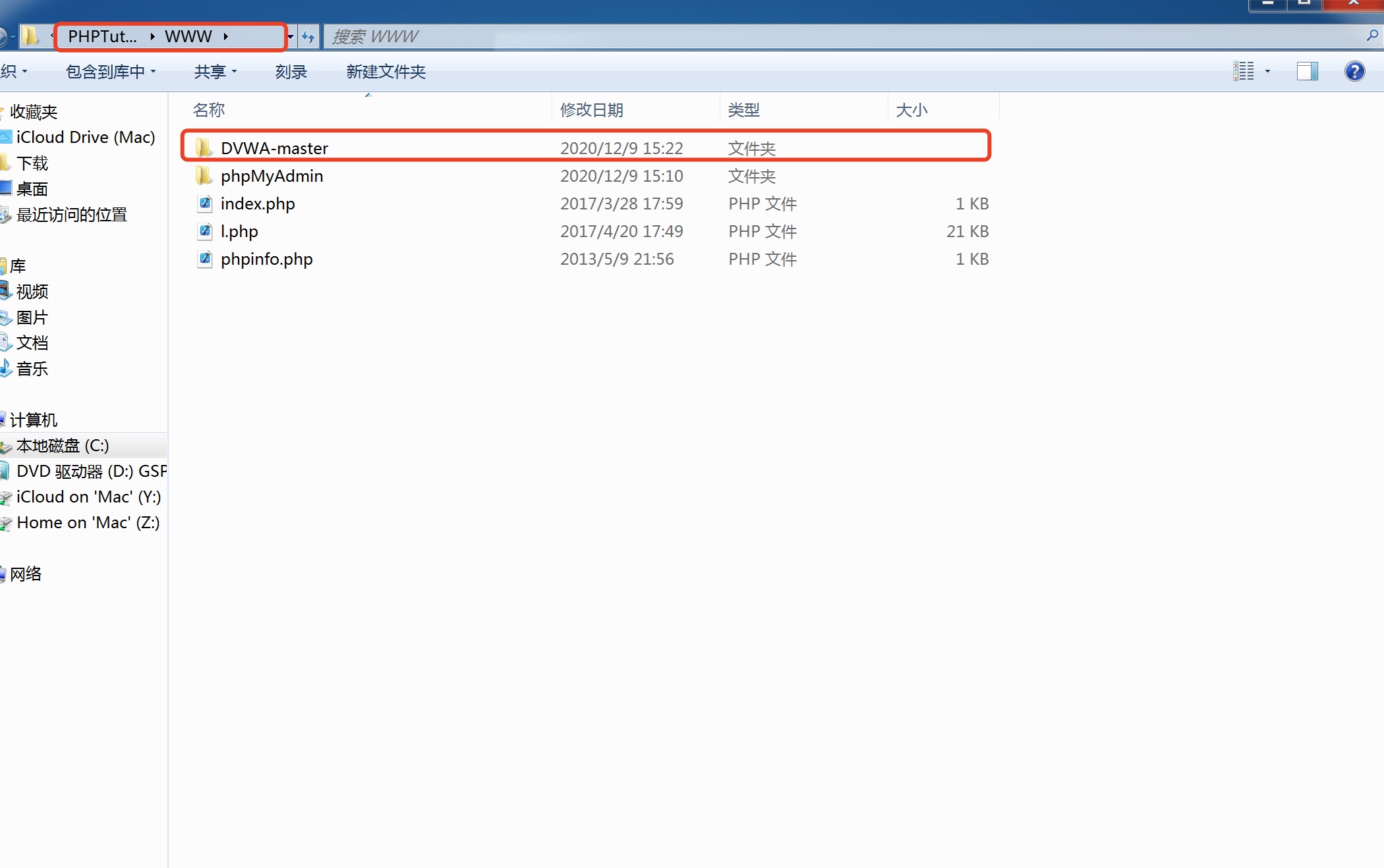 - 将DWVA-master文件夹复制到PHPTutorial下的WWW文件夹下