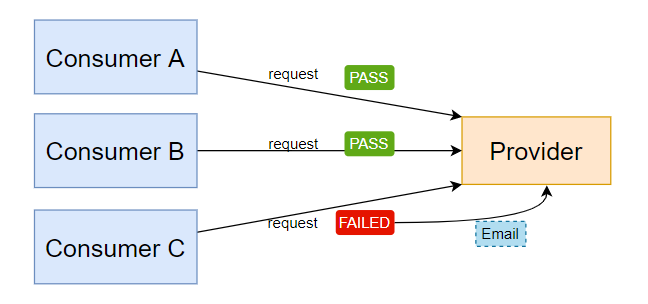 首先来看看第一种,consumer 可以对 provider 的服务进行测试,一般就是以直接访问API 作为测试形式。当发现测试不通过时,通知 provider 。