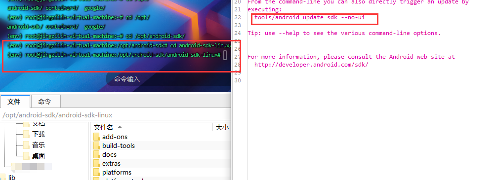 vim进入到/etc/profile后,在末尾加上: export ANDROID_HOME=/home/kemi/android-sdk-linux export PATH=$ANDROID_HOME/tools:$ANDROID_HOME/platform-tools:$PATH