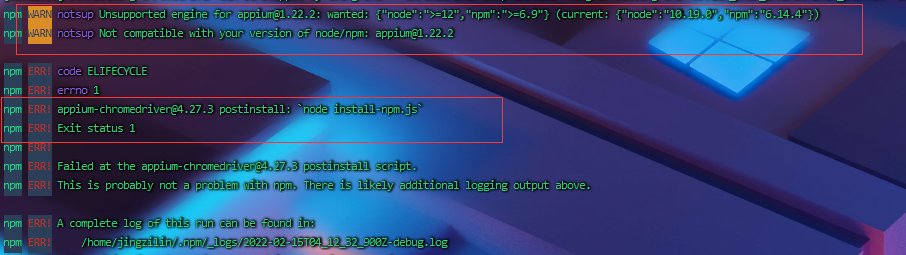 若遇到如下问题,说明安装的node.js和npm版本过低导致,需要升级: