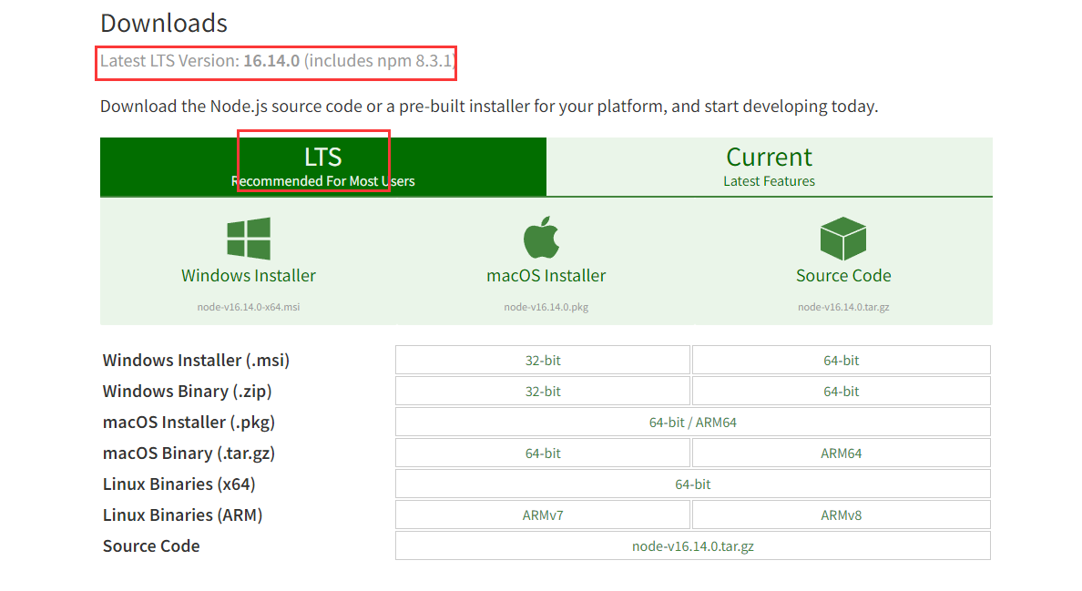 1)第一步,去 nodejs 官网 https://nodejs.org 看最新的版本号(建议选择稳定版本);