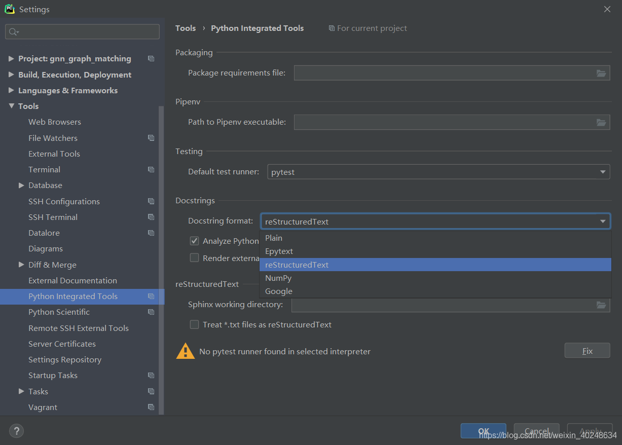 去File | Settings | Tools | Python Integrated Tools | Docstring format 这里改成你想要的格式,然后再回去看看你的三个引号。没有函数注释的情况下是plain。