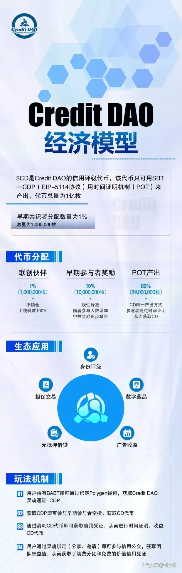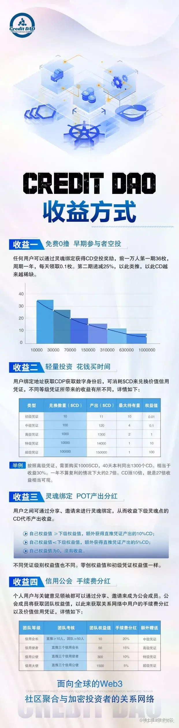 Credit DAO 是全球 Web3 社区聚合和加密投资者的关系网络。通过链上价值发现协议,帮助全球优质Web 3.0创新项目基于链上身份画像精准匹配优质社区和用户,实现共创共赢。